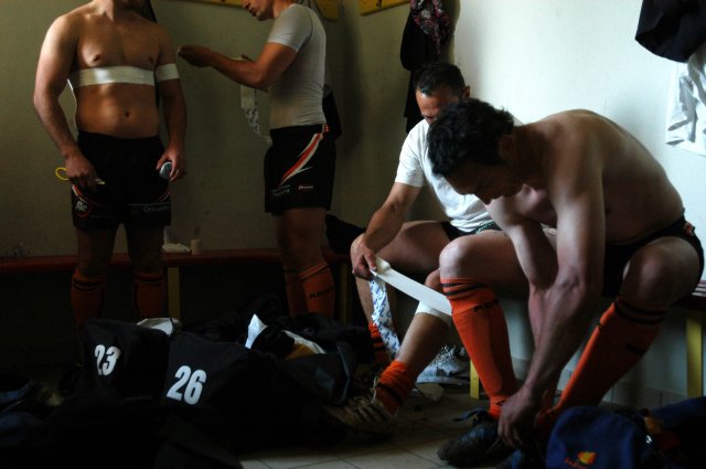 Du 3 au 10 avril 2011, huit étudiant·es en photographie de l’ÉSA Le 75 (école supérieure d’art à Bruxelles) ont sillonné la région d’Aurillac de Saint-Mamet à Massiac et de Saint-Cernin à Saint-Paul des Landes - pour rendre compte des paysages du sport. Leur résidence s’inscrivait dans la continuité du programme Inventaire du présent, archives du futur entrepris dans le Cantal dès 2003, en partenariat avec la Ferme de Trielle. Dans l’esprit documentaire, ils·elles ont réalisé un travail collectif de photographie à la chambre qui souligne l’inscription dans le territoire des équipements sportifs tant collectifs qu’individuels, tant professionnels qu’amateurs. Chacun d’eux·elles a également réalisé un reportage personnel au plus proche des sportif·ves eux·elles-mêmes et ce, dans le cadre des clubs ou des écoles.