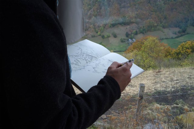 À l'automne 2018, ils·elles étaient onze à venir travailler sur le territoire de Saint-Flour Communauté et plus précisément dans le cadre du Plan de Paysage dont celle-ci était lauréate pour l'année en cours. Ils·elles ont donc parcouru le périmètre des 14 communes concernées afin de révéler les dynamiques et les enjeux paysagers de ce territoire. Pour ce faire, ils·elles ont réalisé des prises de vue à la chambre selon les thématiques développées par le Plan de paysage, notamment des points de vue proposés par des personnes qui y participaient, des reconductions de vues anciennes, des vues de la vallée de la Truyère, mais aussi des clichés du patrimoine remarquable en Aubrac. Ils·elles ont également été à la rencontre de certains acteur·rices du paysage –maires, agriculteur·rices, élèves du lycée agricole, agents des forêts et/ou des eaux, guides et animateur·rices nature – qui avaient accepté au préalable d'être photographiés. Ils·elles les ont suivis durant plusieurs jours pour réaliser une série plus personnelle d’images en format numérique. En outre, une étudiante a produit un reportage sur la journée Lecture des paysages organisée par le collectif Un pas de côté, le mercredi 10 octobre 2018. Dans le cadre du projet départemental, le patrimoine et les paysages ont été documentés ainsi que des instantanés de la vie quotidienne de Saint-Flour communauté.